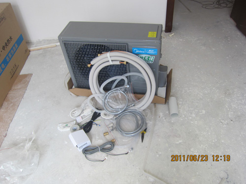 3、這就是室外機和連接管線了。配三米純銅管。